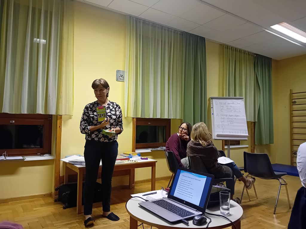 Zudem stellte die Vortragend viele Spiele vor, die für den Erwerb des Lesens, Schreibens und Rechnens gut, für die Kinder lustig und interessant zu spielen sind.